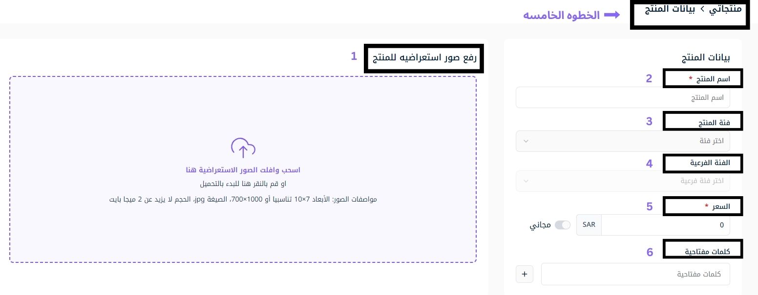 5. السعر: حدد قيمة المنتج أو فعل خيار "مجاني".