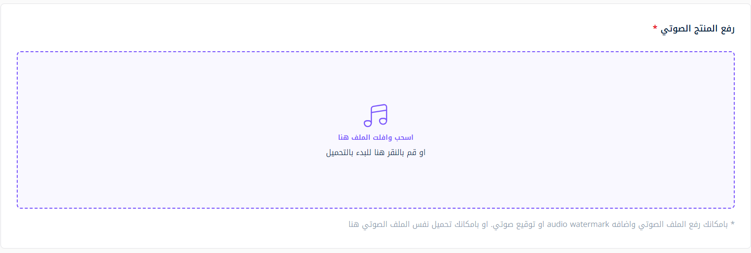 لإعطاء العملاء فرصة للاستماع قبل الشراء، يمكنك رفع ملف تجريبي يحتوي على توقيع صوتي (Audio Watermark) لحماية حقوقك.