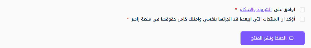 9- الموافقة على الشروط والنشر :- بعد التأكد من جميع بيانات المنتج وصحة الملفات التي قمت برفعها: