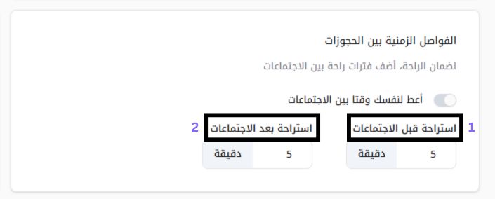 وايضا بعد كل اجتماع 5 , 10 دقائق لضمان راحتك بين الجلسات.
