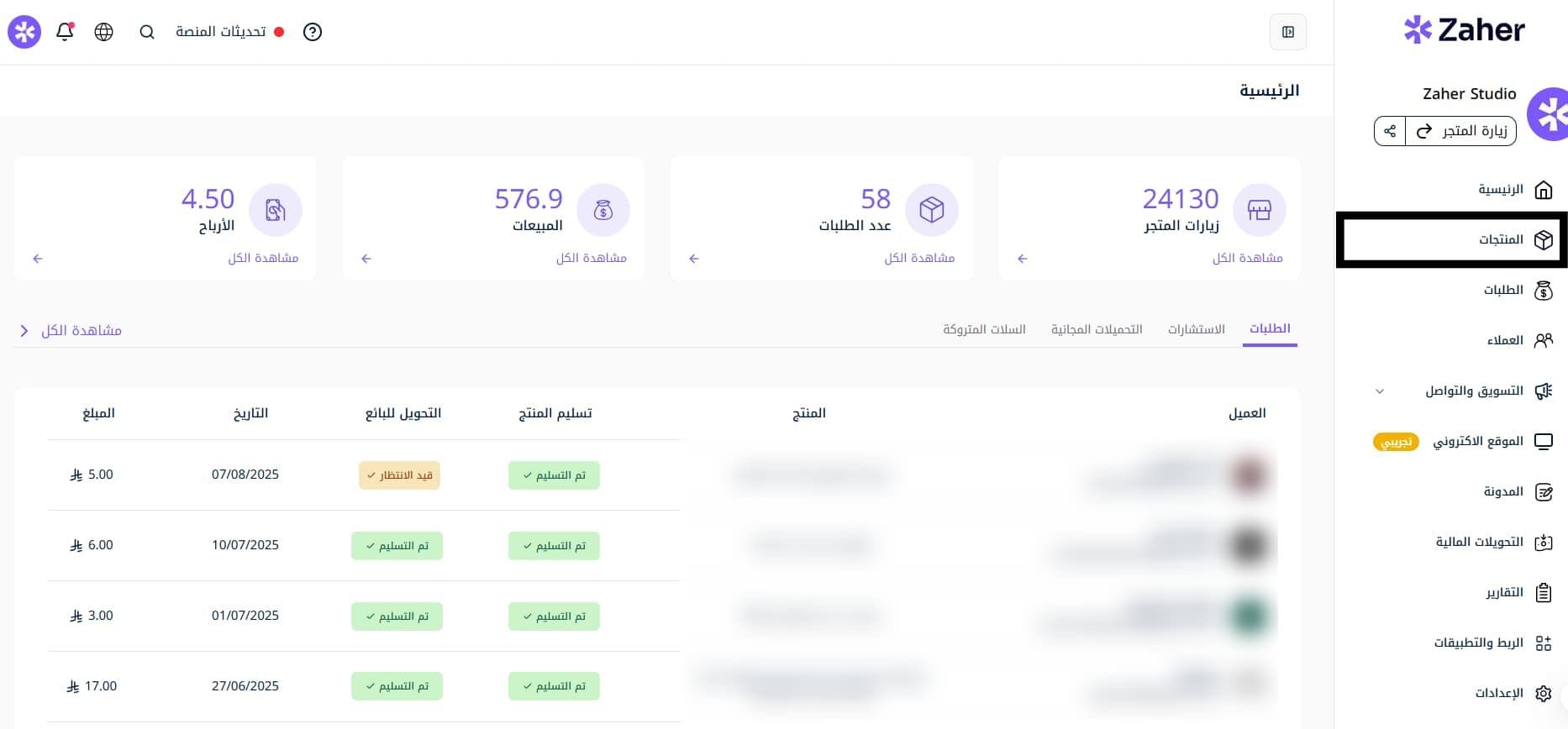 2- التوجه إلى قسم المنتجات:- اختر من القائمة الجانبية "المنتجات".