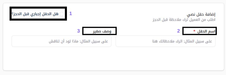 12- إضافة حقل نصي قبل الحجز (اختياري)