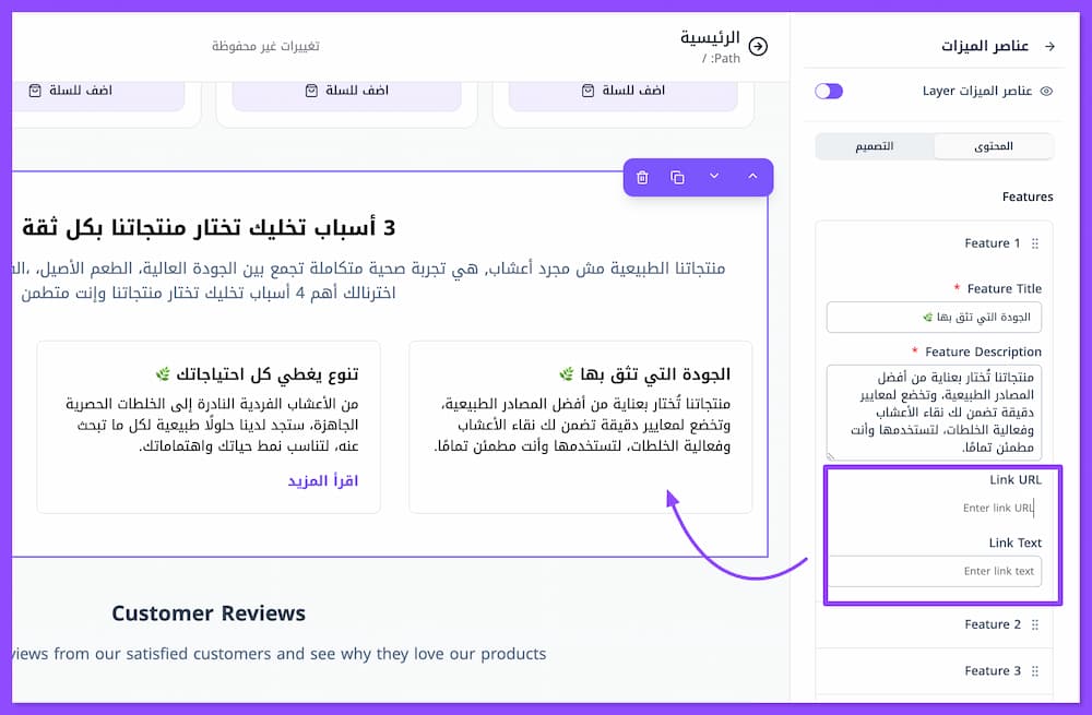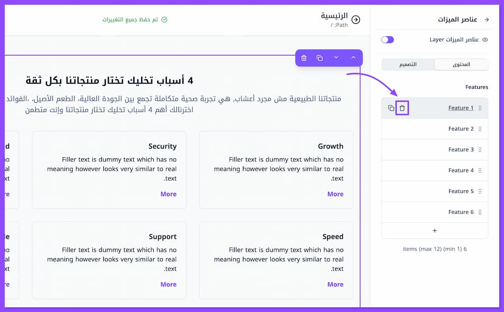 بمجرد حذف النص (اقرأ المزيد) يختفي من قسم المزايا مباشرةً وتستغني عنه في دقائق.
