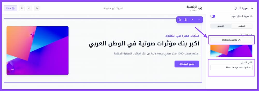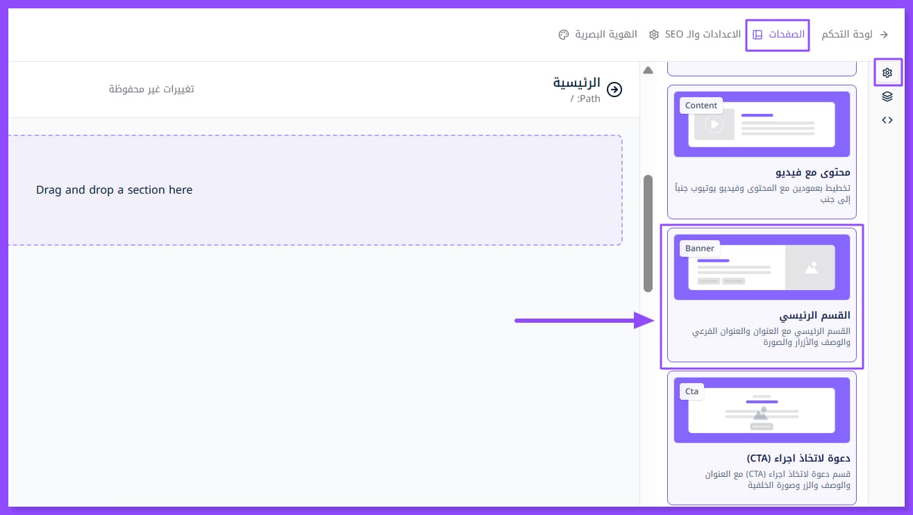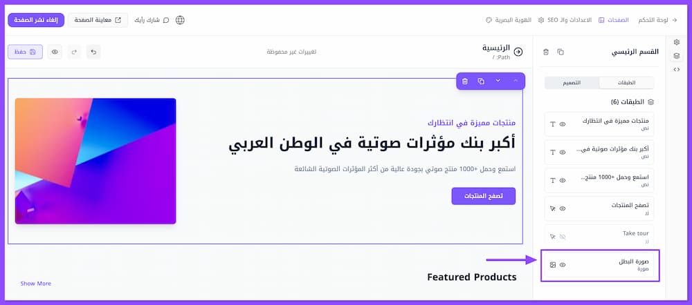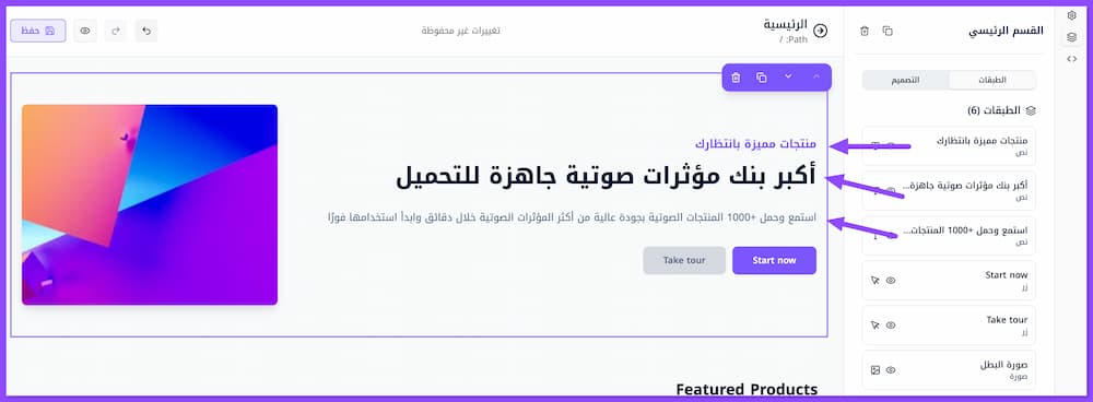 إبدأ إضافة وتعديل القسم الرئيسي البارز في موقعك كالتالي: