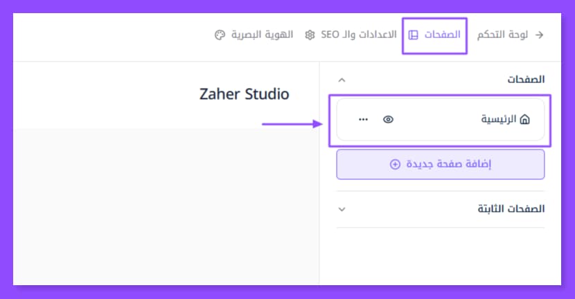 3- اضغط على الصفحة التي تريد تعديل أقسامها الآن، ولتكن الصفحة الرئيسية.