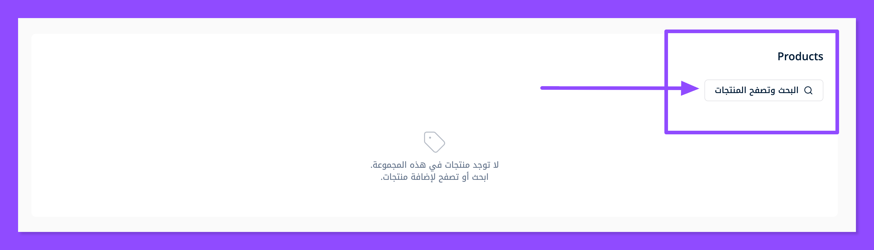 ثم توجه إلى القسم الثاني من الصفحة، والذي يتعلق باختيار المنتجات التي تريد أن تكون ضمن هذه المجموعة عبر البحث يدويًا، وهنا اضغط على (البحث وتصفح المنتجات).
