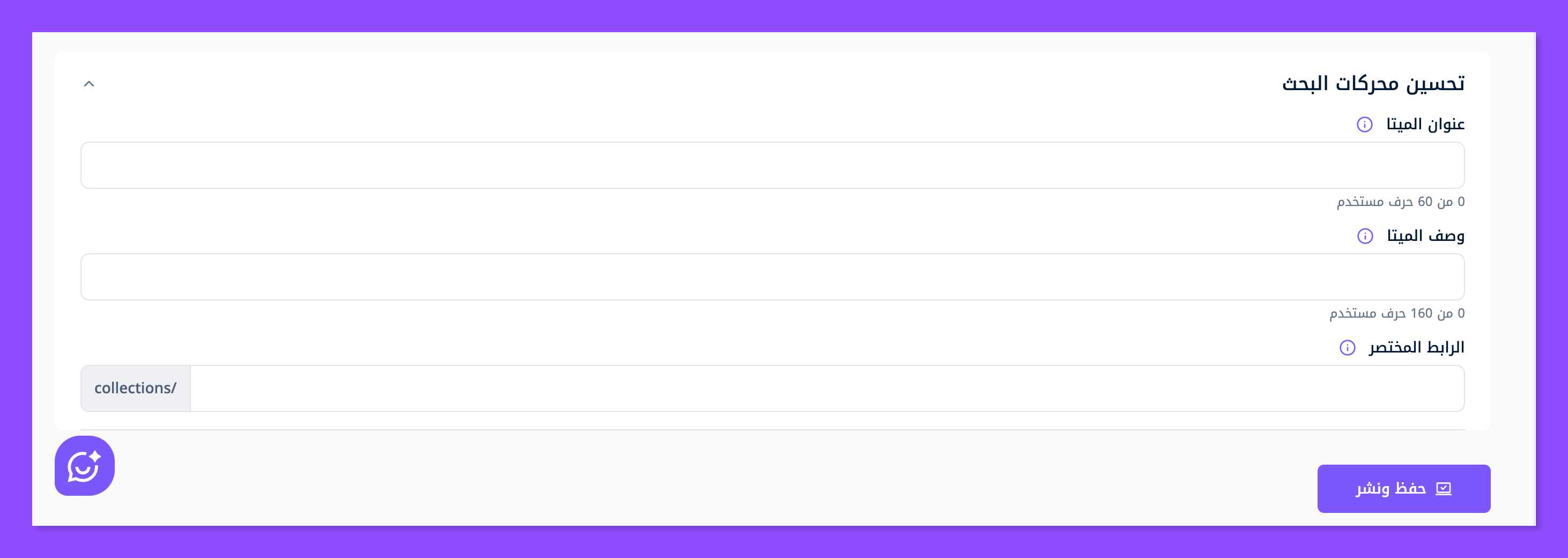 والرابط المختصر (URL)، يتضمن (-) بين كل كلمة ليشكل الرابط على محرك البحث جوجل الذي سيؤدي إلى مجموعتك، ويجب أن يكون باللغة الإنجليزية فقط لا غير حتى لو كان متجرك عربيًا بالكامل.