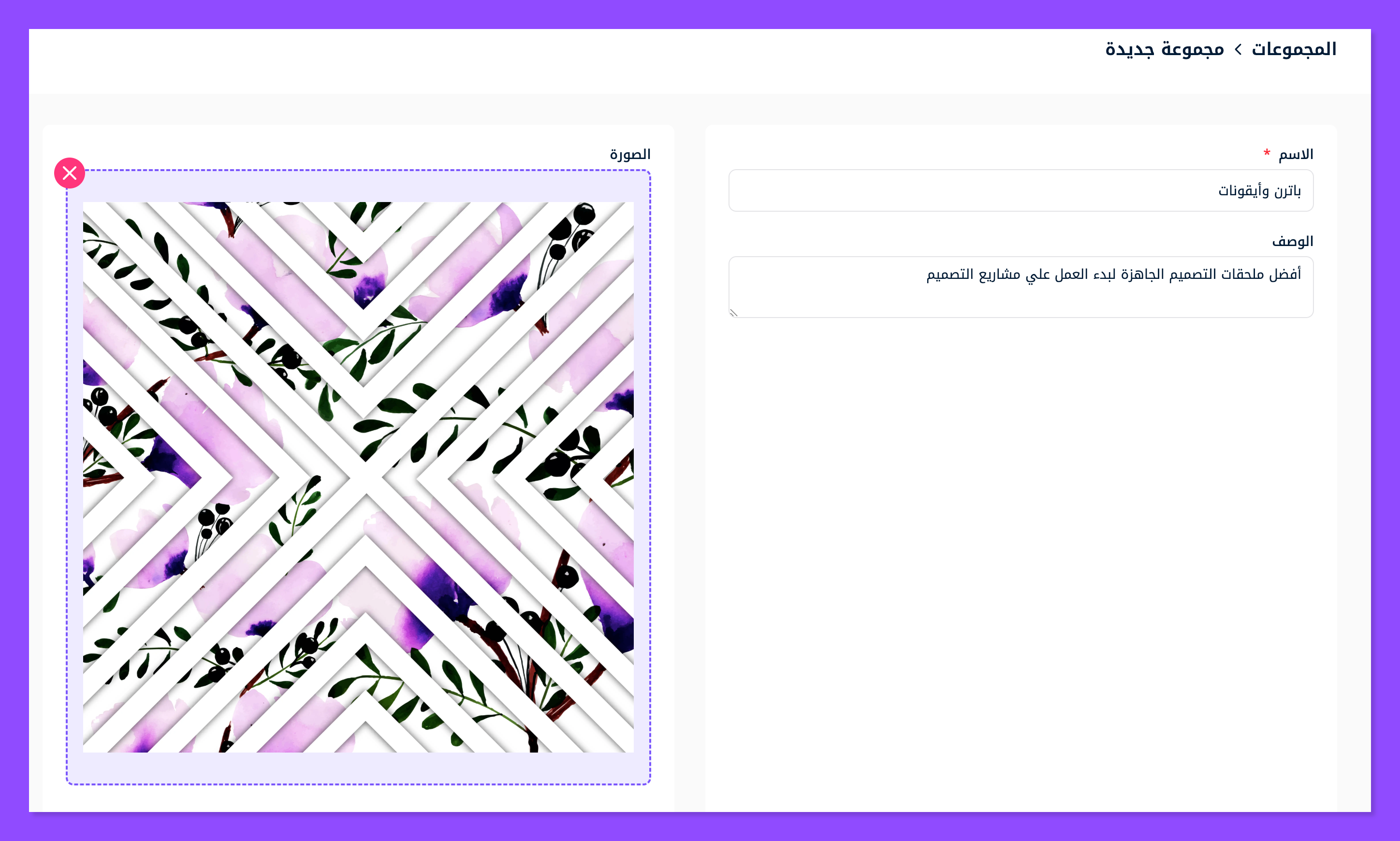 قسم أول للبيانات الرئيسية للمجموعة (كالصورة وعنوان المجموعة والوصف القصير).