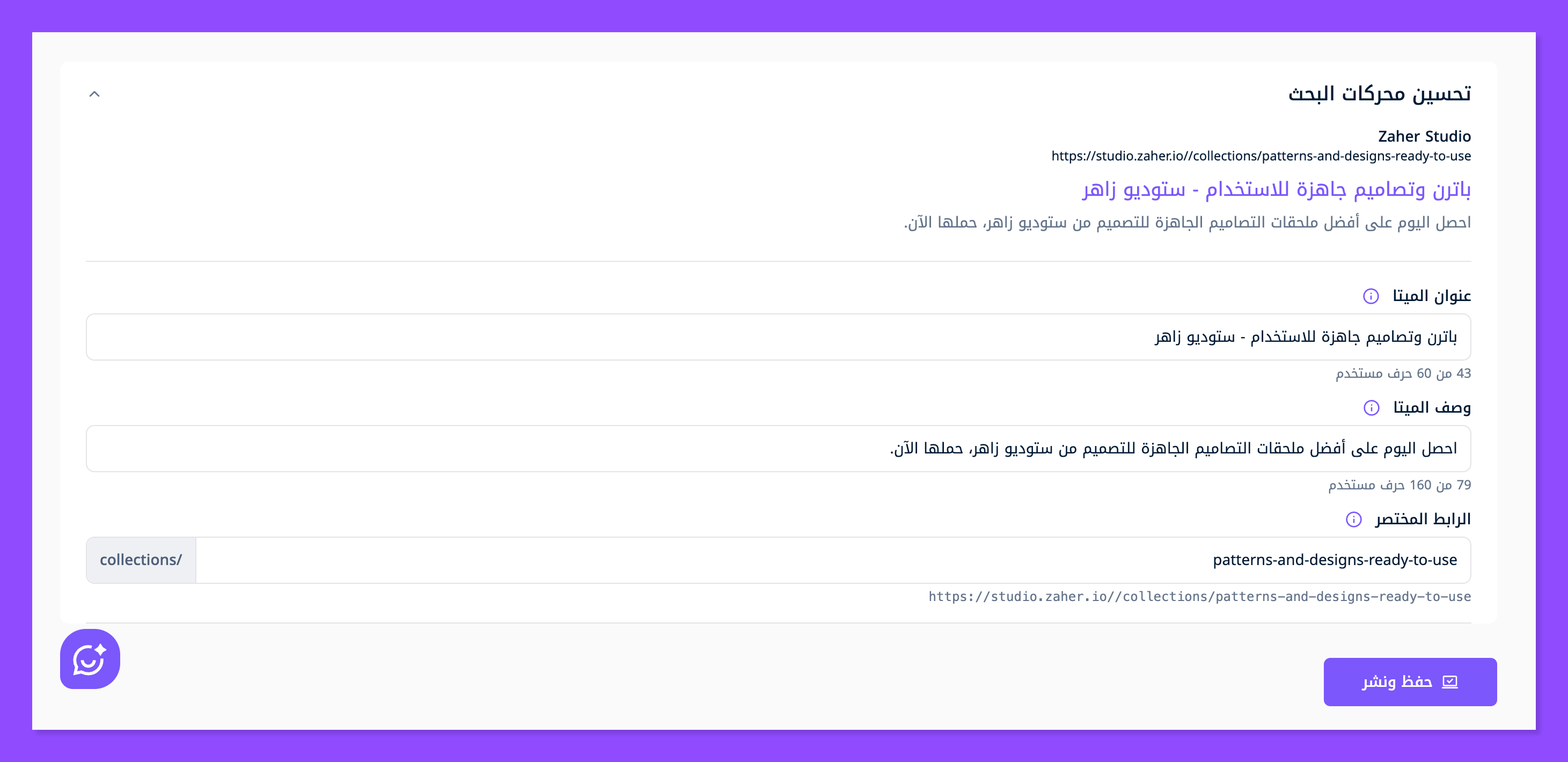 قسم ثالث يخص بيانات تحسين محركات البحث لتضمن ظهور المجموعة للباحثين عنها في جوجل.
