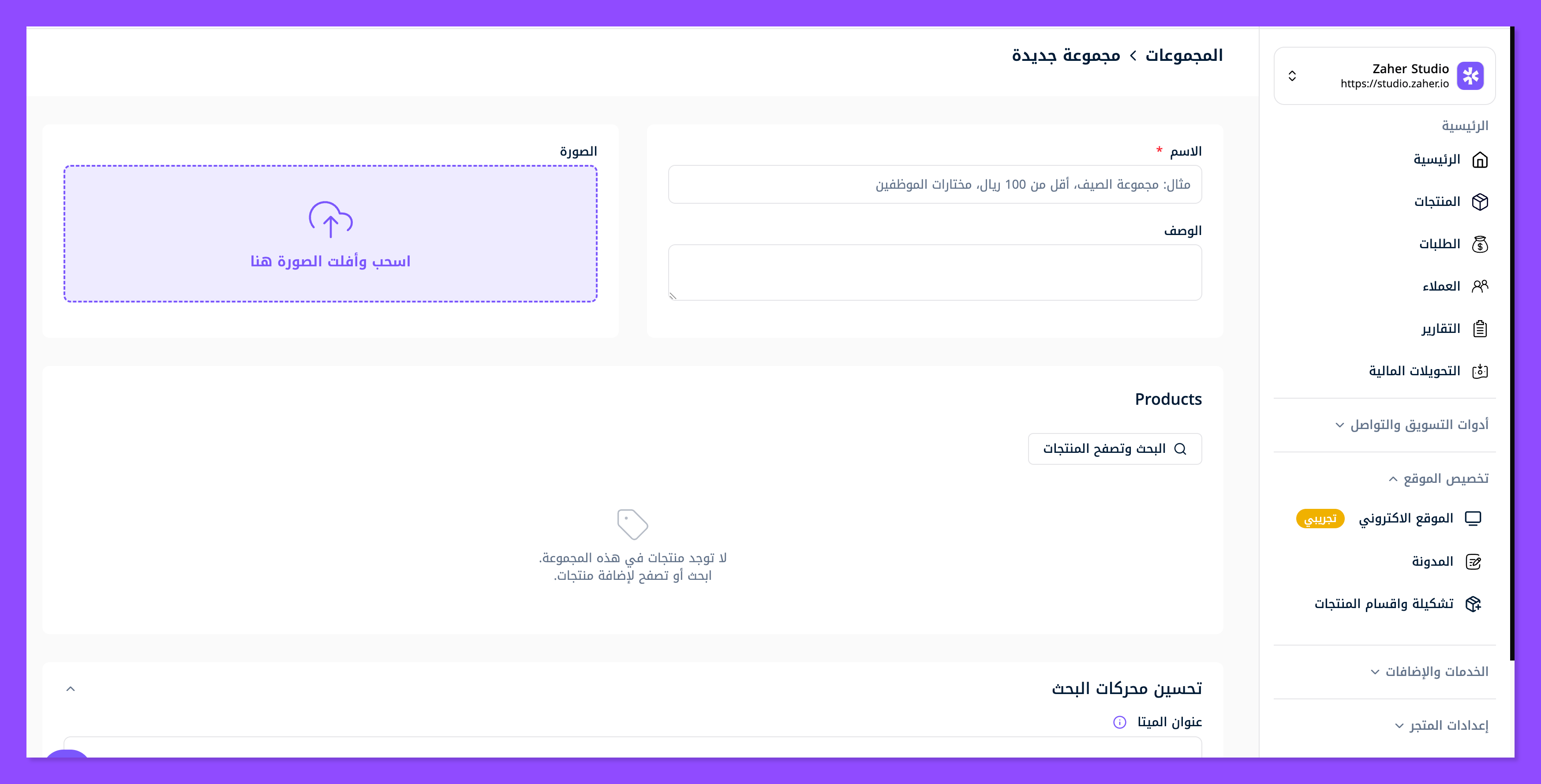 كيف تضيف مجموعات إلى متجرك في زاهر؟