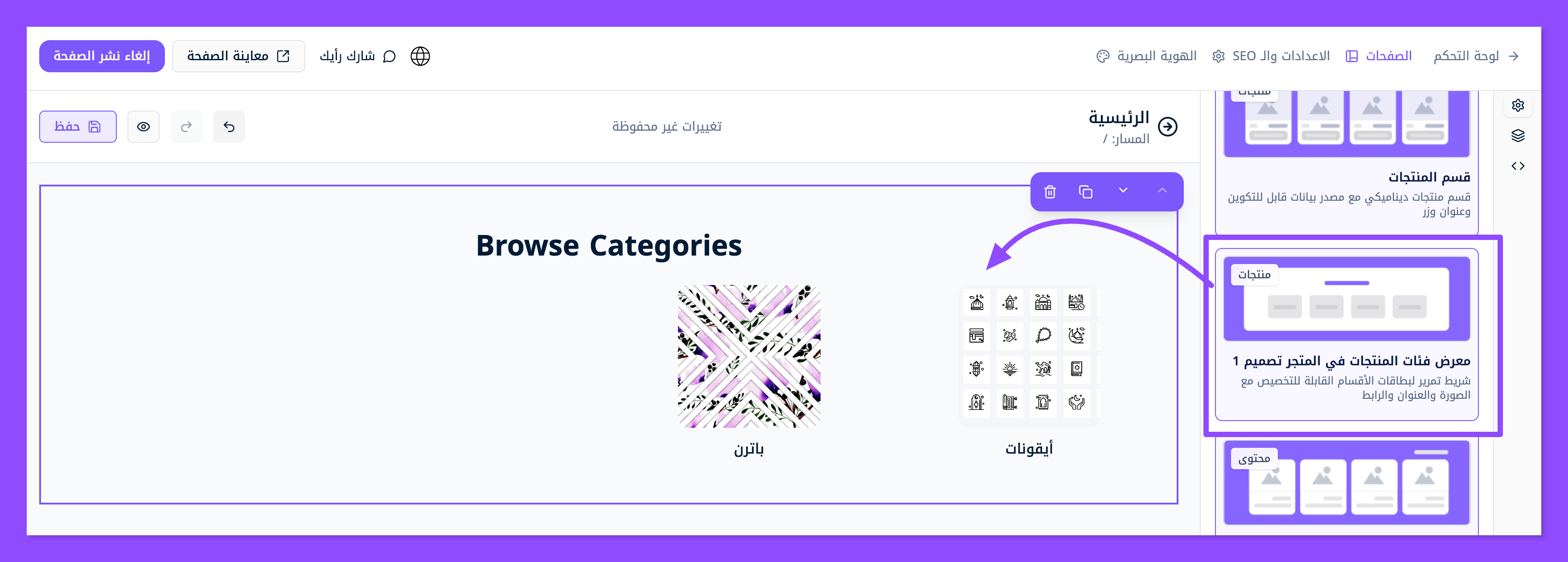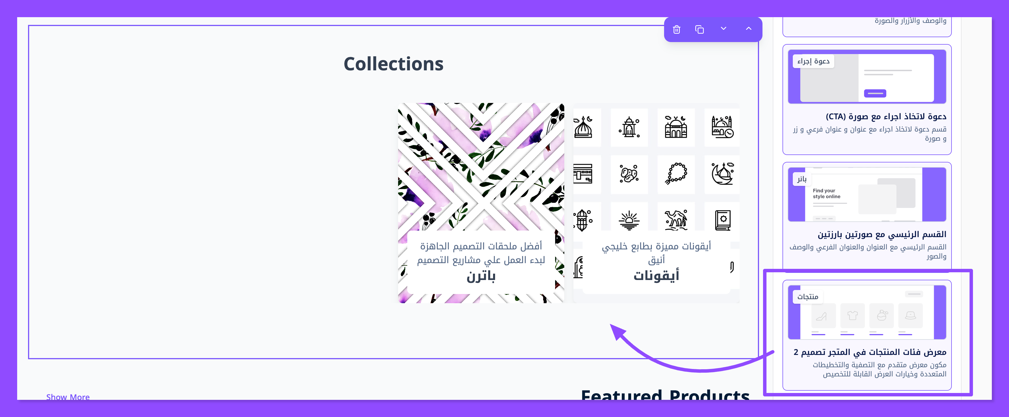 ابحث عن قسم يسمى (معرض فئات المنتجات في المتجر) والذي يتوفر بتصميمين اثنين (تصميم 1 / وتصميم 2)
