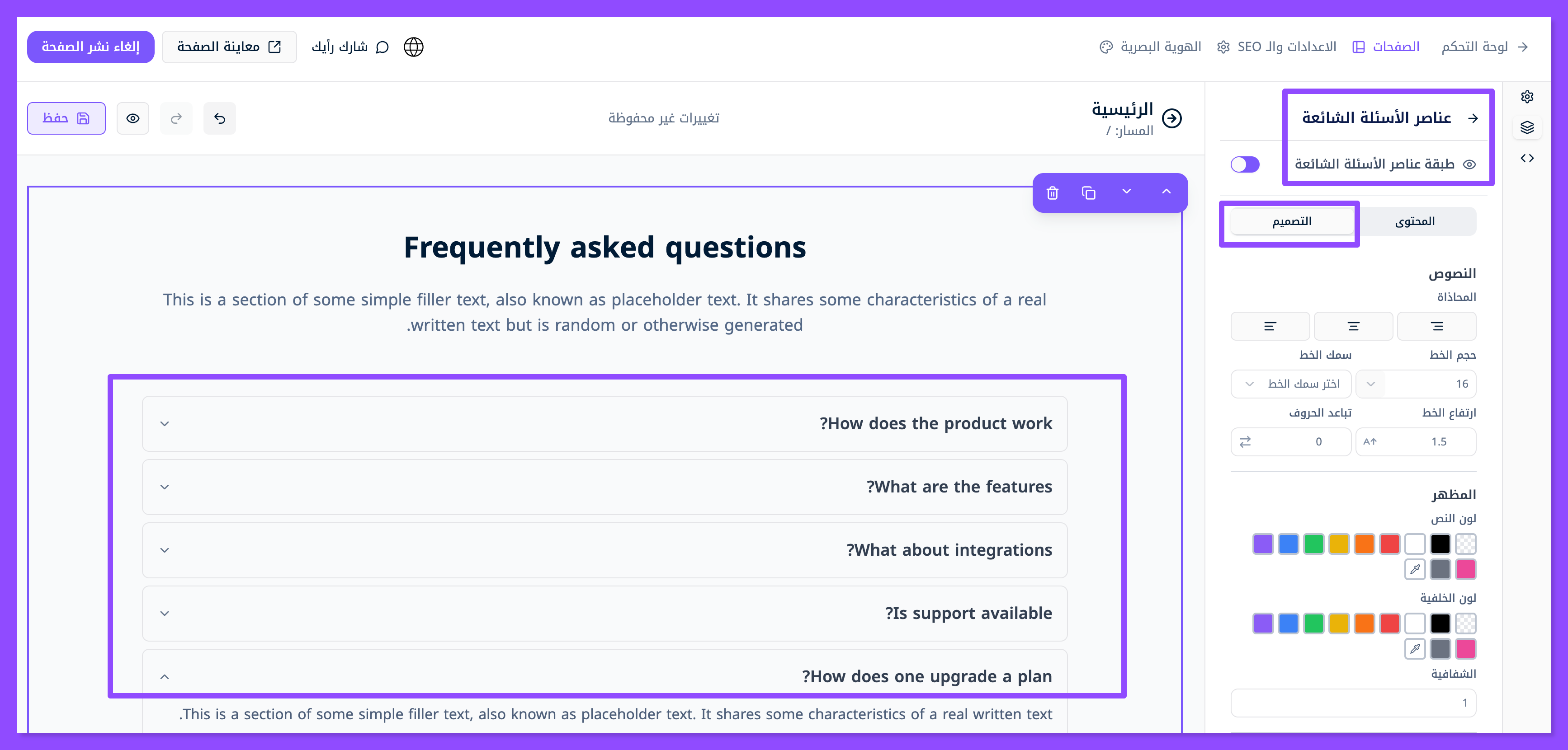كيفية تخصيص قسم الأسئلة الشائعة