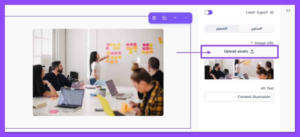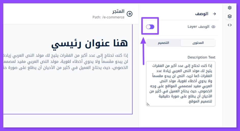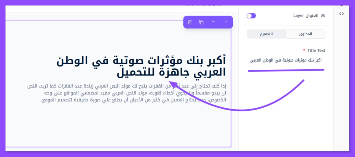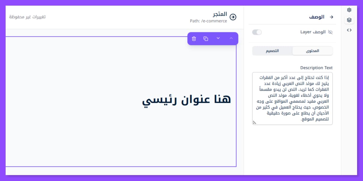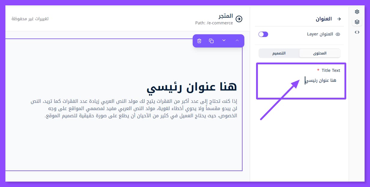 بمجرد إضافة القسم الذي تريد تعديله تظهر لك هذه النافذة على اليمين. وقد لا تظهر إلا عبر الضغط على أيقونة الطبقات الظاهرة في أقصى اليسار.