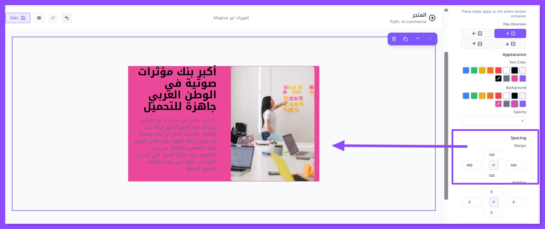 المثير للاهتمام، أنك تستطيع تصميم الأقسام على هواك حتى لو كانت خبرتك في التصميم صفر٬ وبطريقة جدًا سهلة