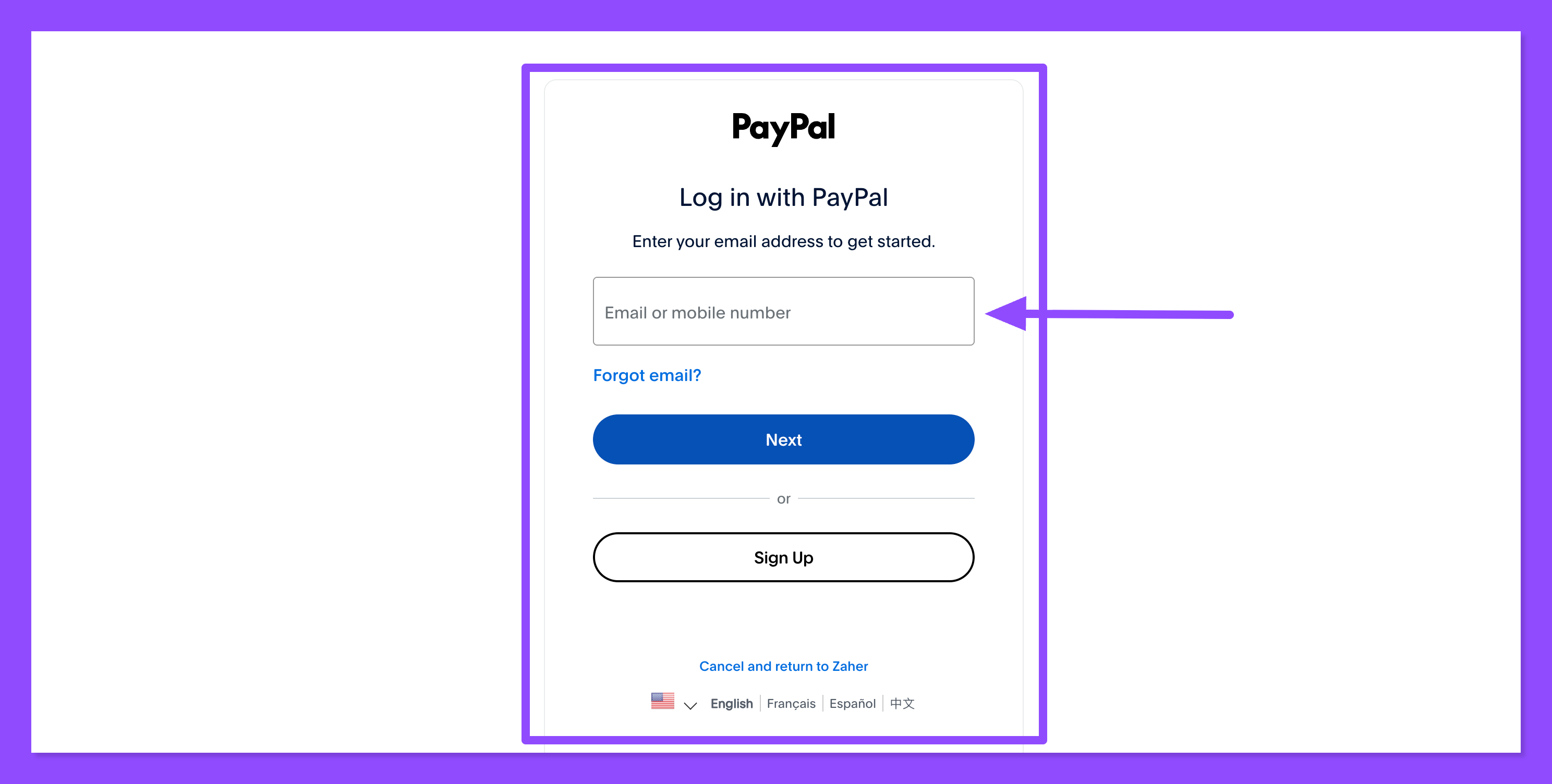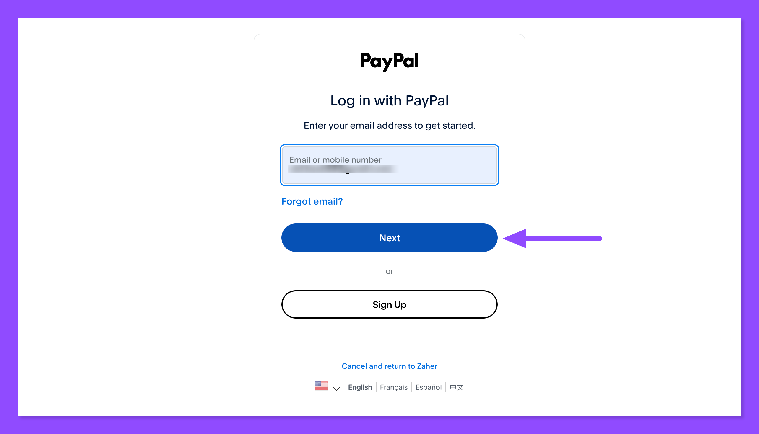 تظهر لك هذه النافذة، وهنا ضع إيميل حساب بايبال الخاص بك في المربع.