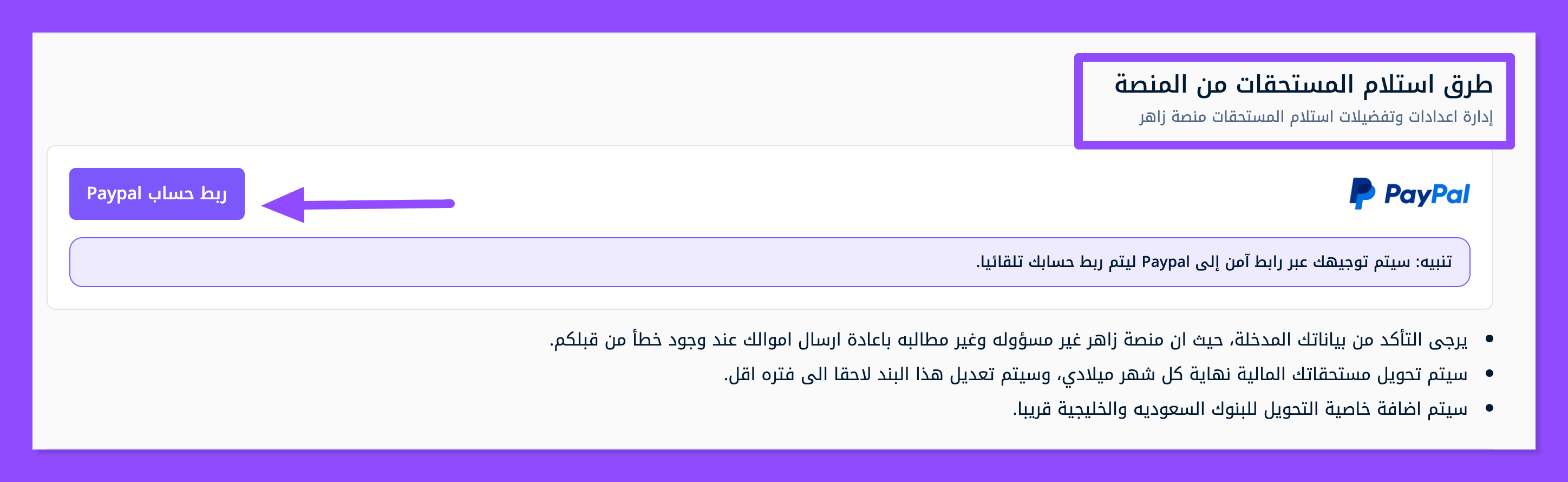 كيفية ربط حساب بايبال لاستقبال المدفوعات من المنصة