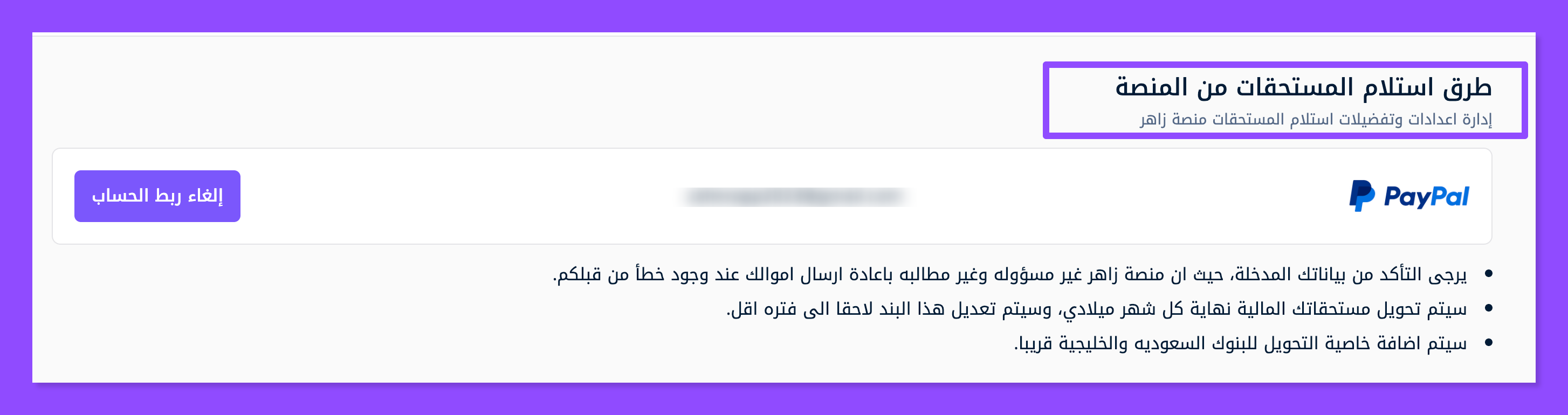 تظهر لك صفحة طويلة، وما يهمك منها هو قسم طرق استلام المستحقات من المنصة.