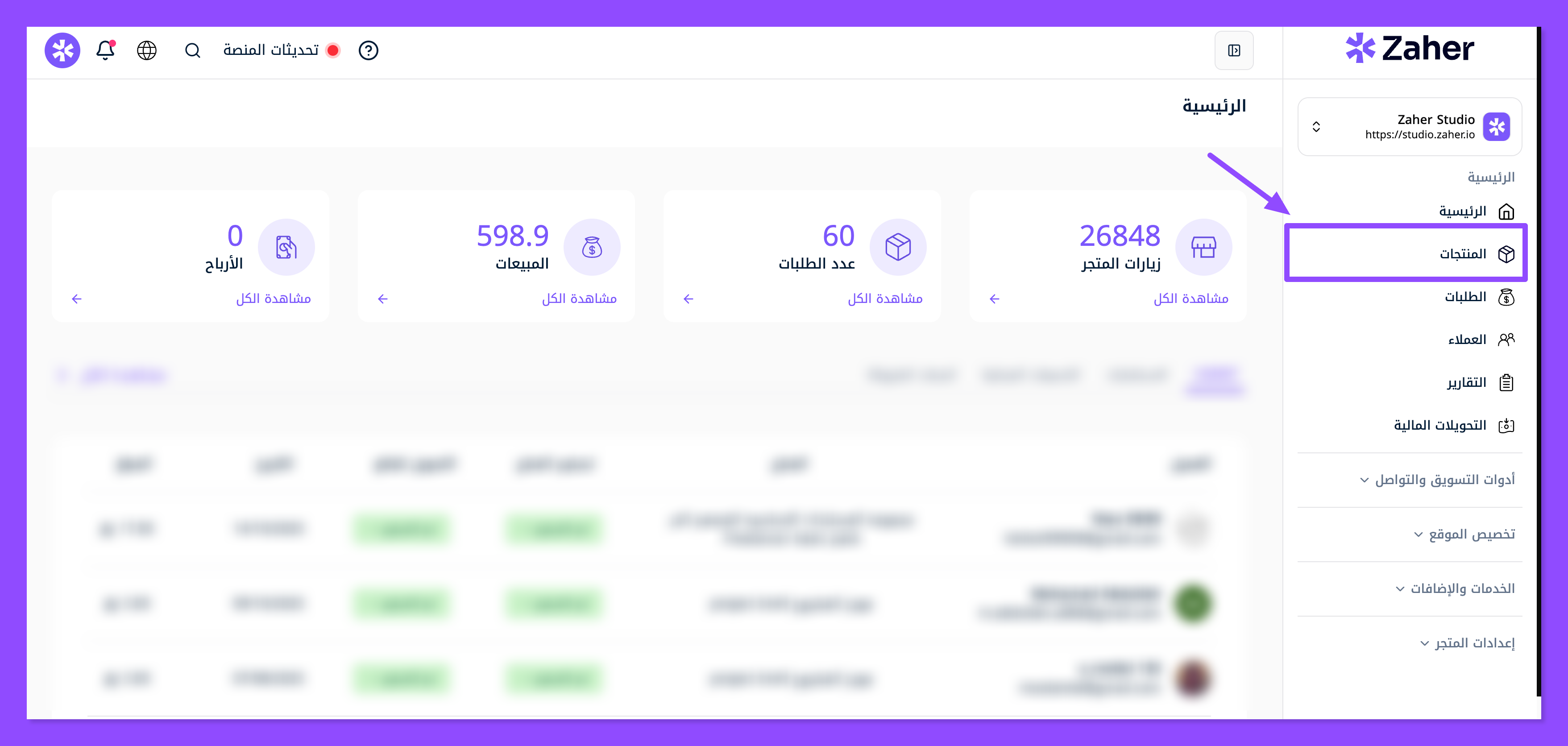 توجه إلى لوحة التحكم في متجرك - تحديدًا المنتجات التي تظهر في القائمة يمين الصفحة.
