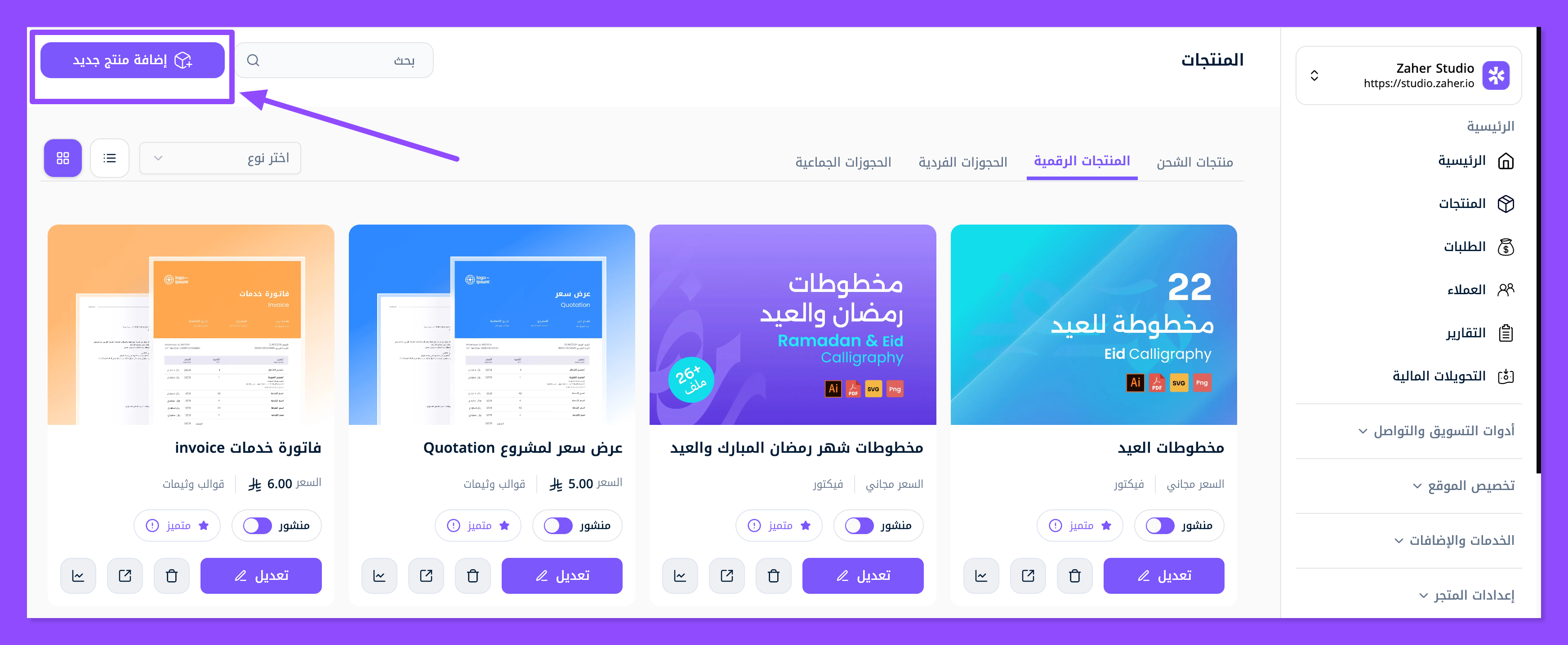 اضغط على زر إضافة منتج جديد مباشرةً.