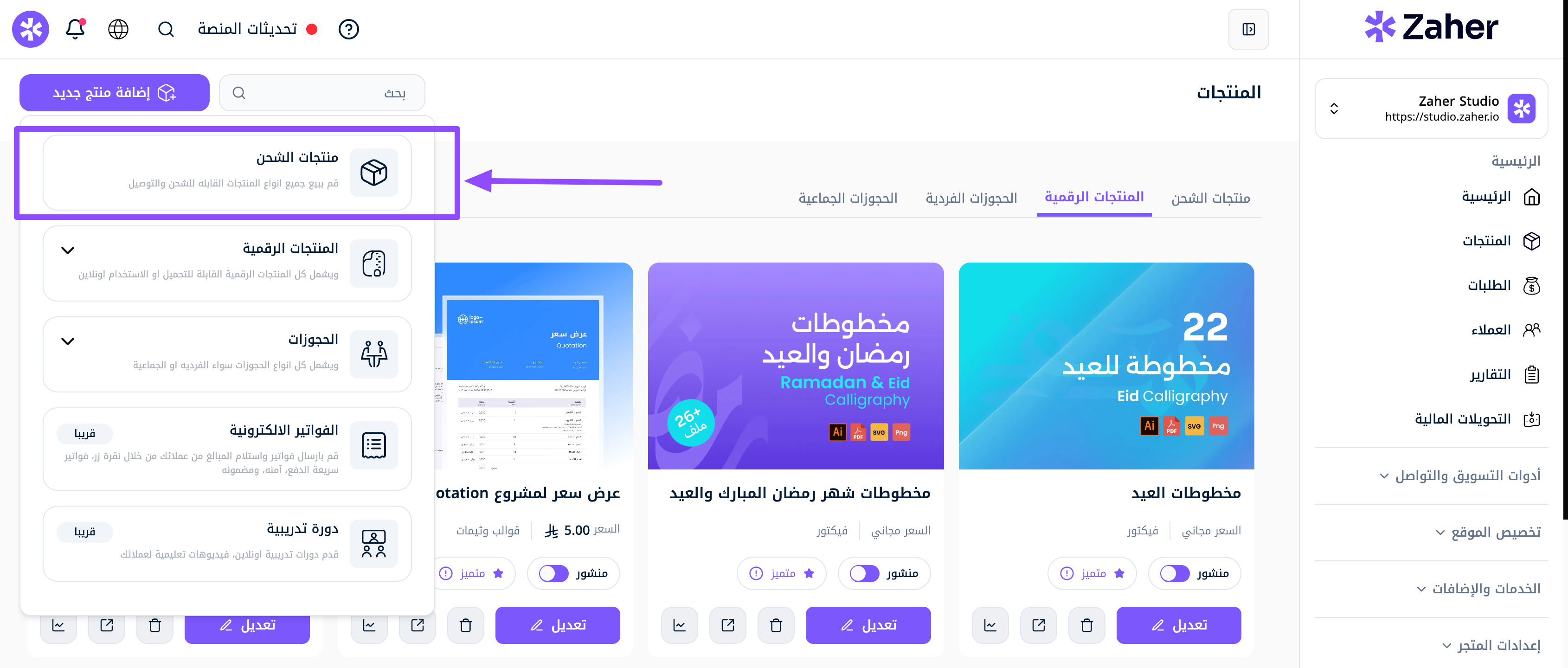 كيفية رفع منتجات الشحن على منصة زاهر